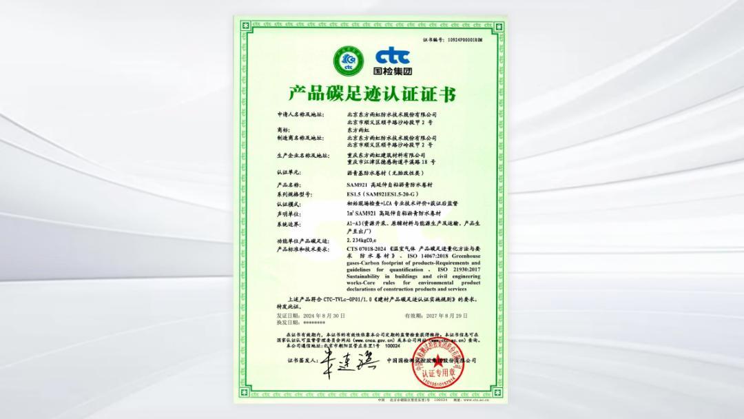 近日,東方雨虹憑借在低碳可持續發(fā)展方面的主動(dòng)探索與創(chuàng )新實(shí)踐,獲得中國國檢測試控股集團股份有限公司(以下簡(jiǎn)稱(chēng)“國檢集團”)頒發(fā)的防水行業(yè)首張“產(chǎn)品碳足跡認證證..