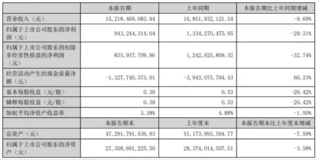 8月28日,東方雨虹發(fā)布2024年半年度報告。報告期內,公司實(shí)現營(yíng)業(yè)收入約152.18億元,同比下降9.69%;歸屬于上市公司股東的凈利潤約9.43億元,同比下降29.31%。